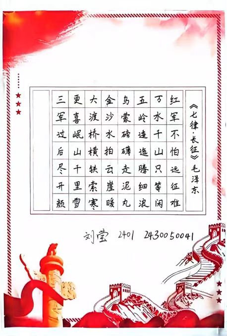 为庆祝中华人民共和国成立75周年,suncitygroup太阳成集团开展主题为“学为师范,写意风采”的三字一画展示活动。“三字一画”,即钢笔字、粉笔字、毛笔字和简笔画,是教育领域的重要技能,也是艺术表达的独特方式。在这个举国欢庆的节日里,它们成为同学们向祖国献礼的独特方式,共绘祖国壮丽画卷。