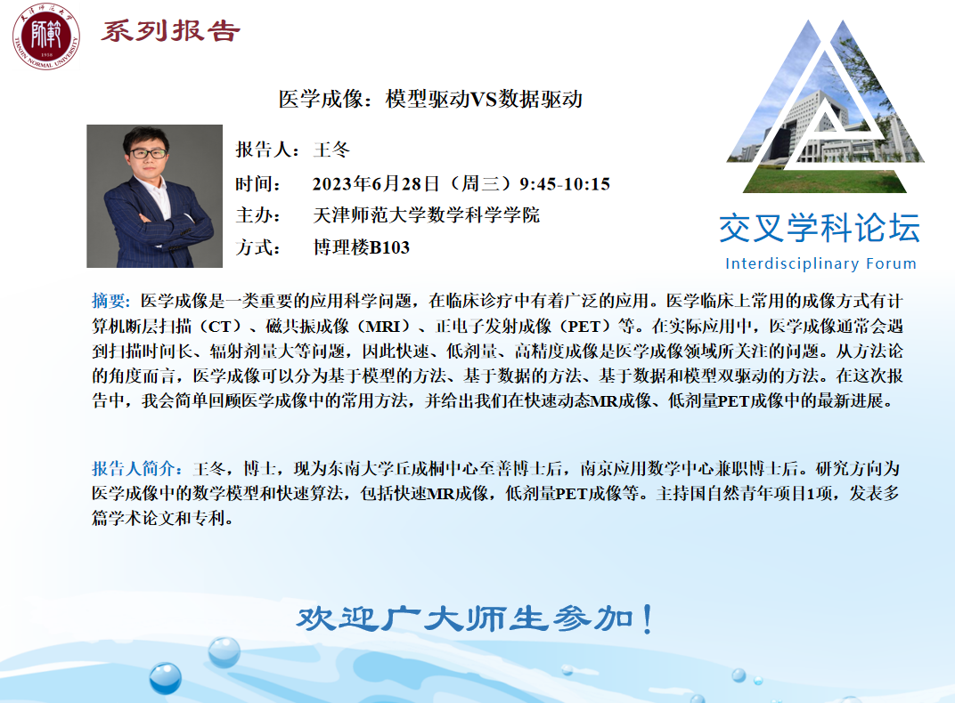【预告】学术报告(2023-15)6月28日——医学成像:模型驱动VS数据驱动