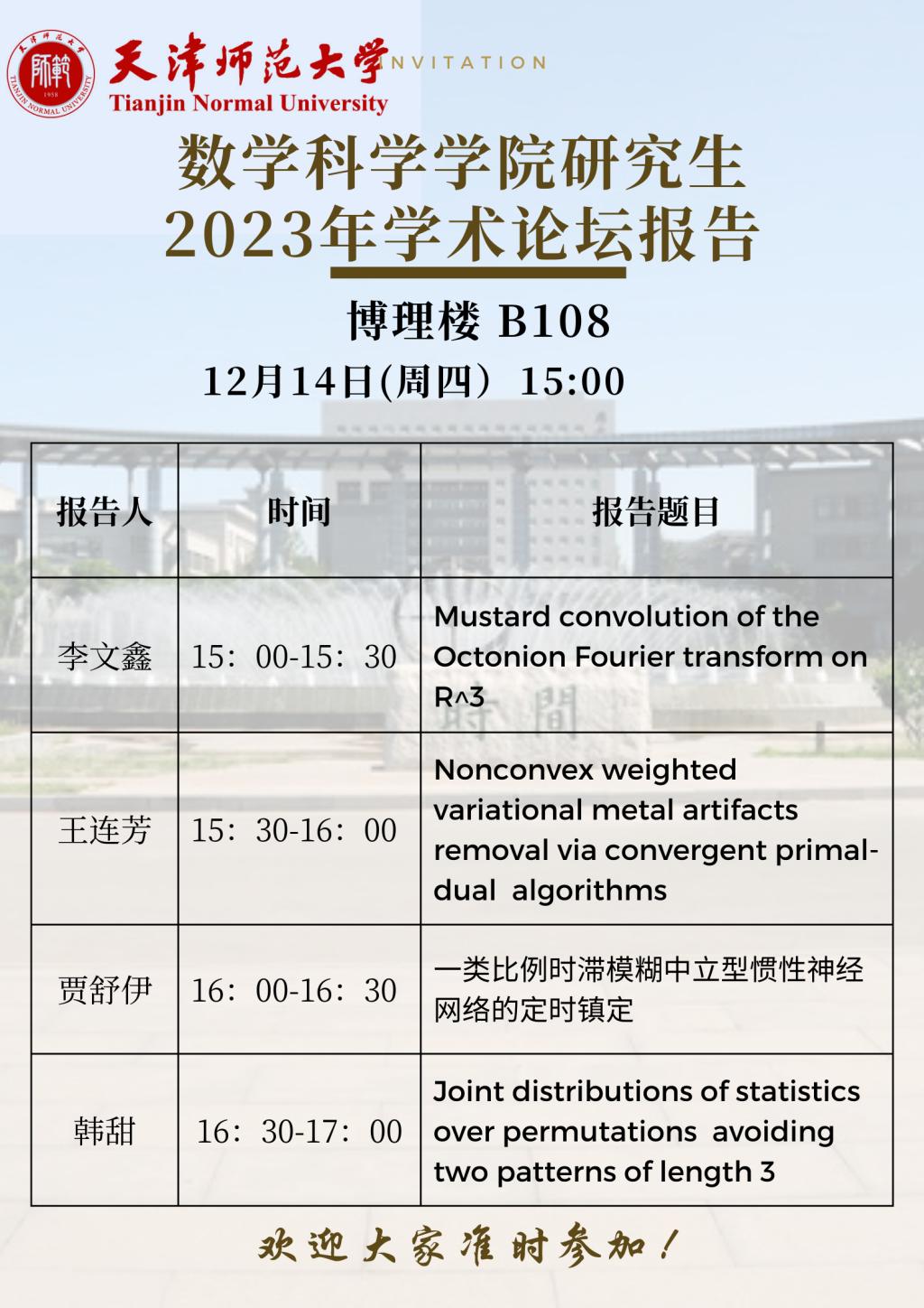 【预告】学术报告(2023-41)12月14日—suncitygroup太阳成集团研究生2023年学术论坛报告