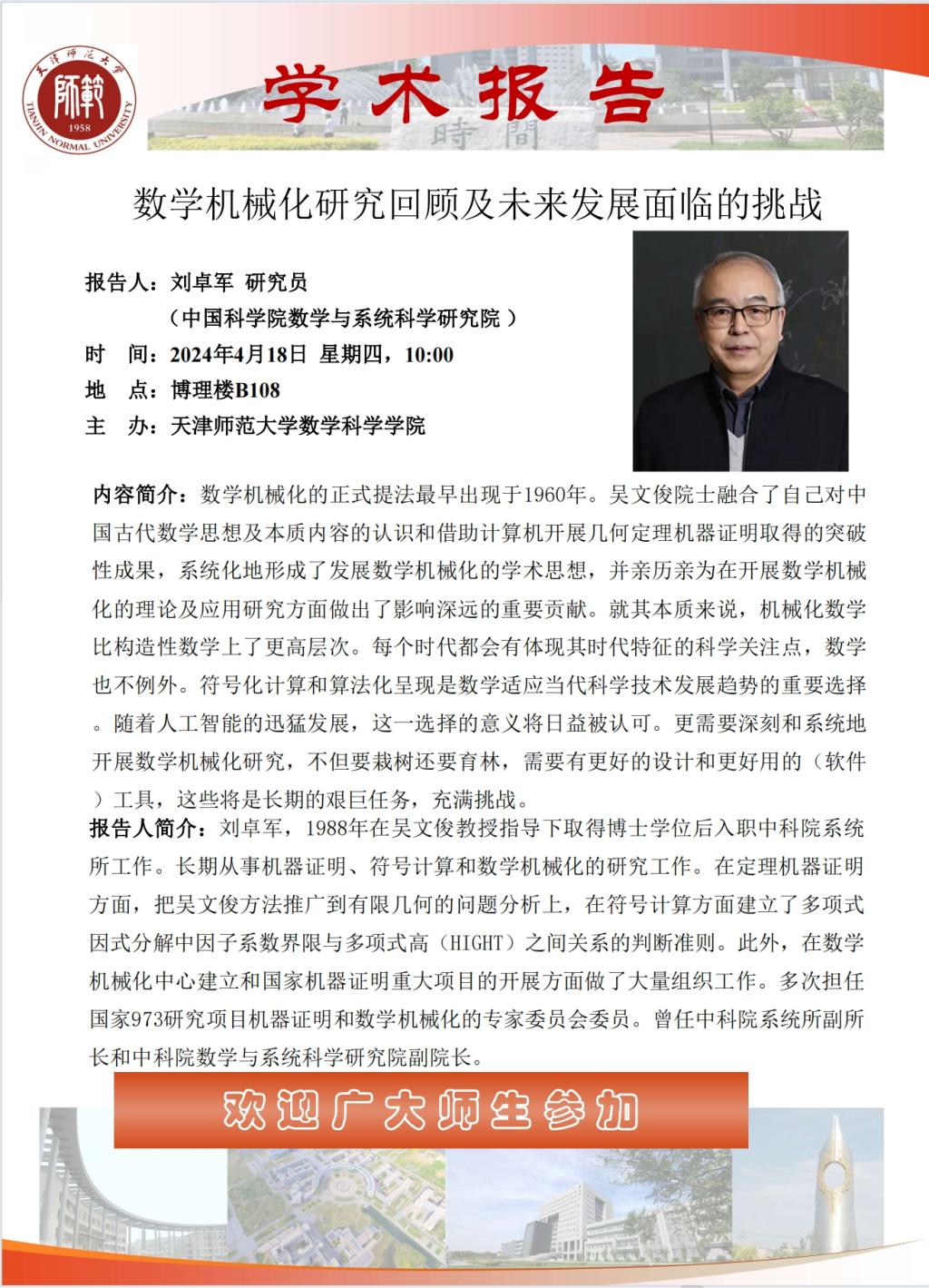 【预告】学术报告(2024-3)4月18日—数学机械化研究回顾及未来发展面临的挑战