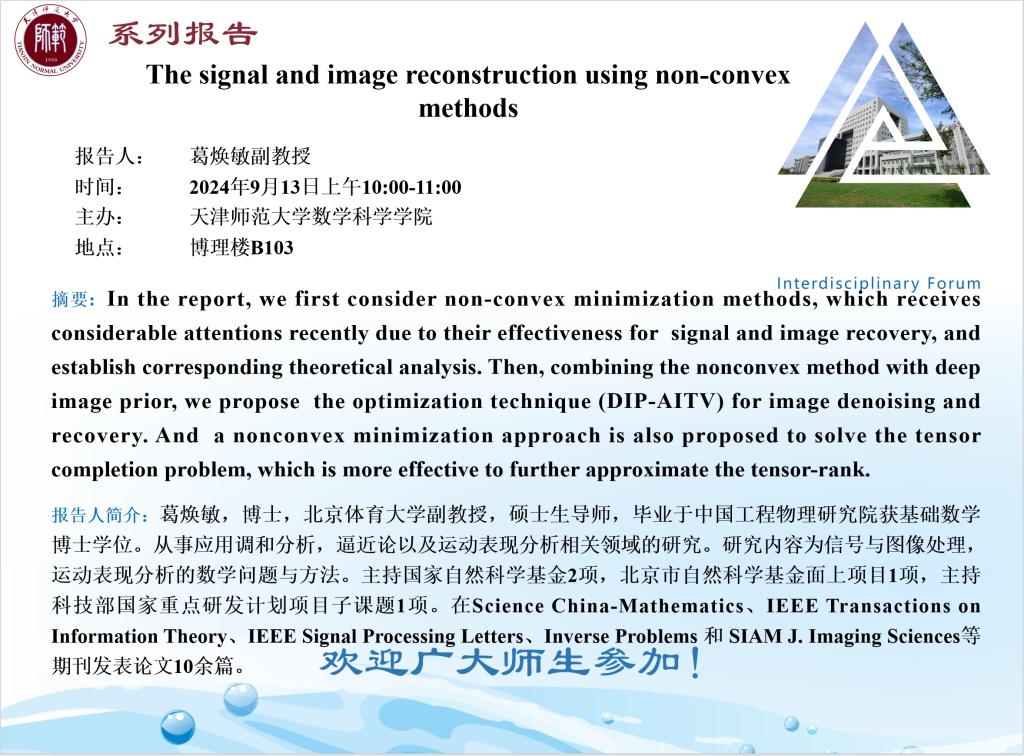 【预告】学术报告(2024-17)9月13日——The signal and image reconstruction using non-convex methods