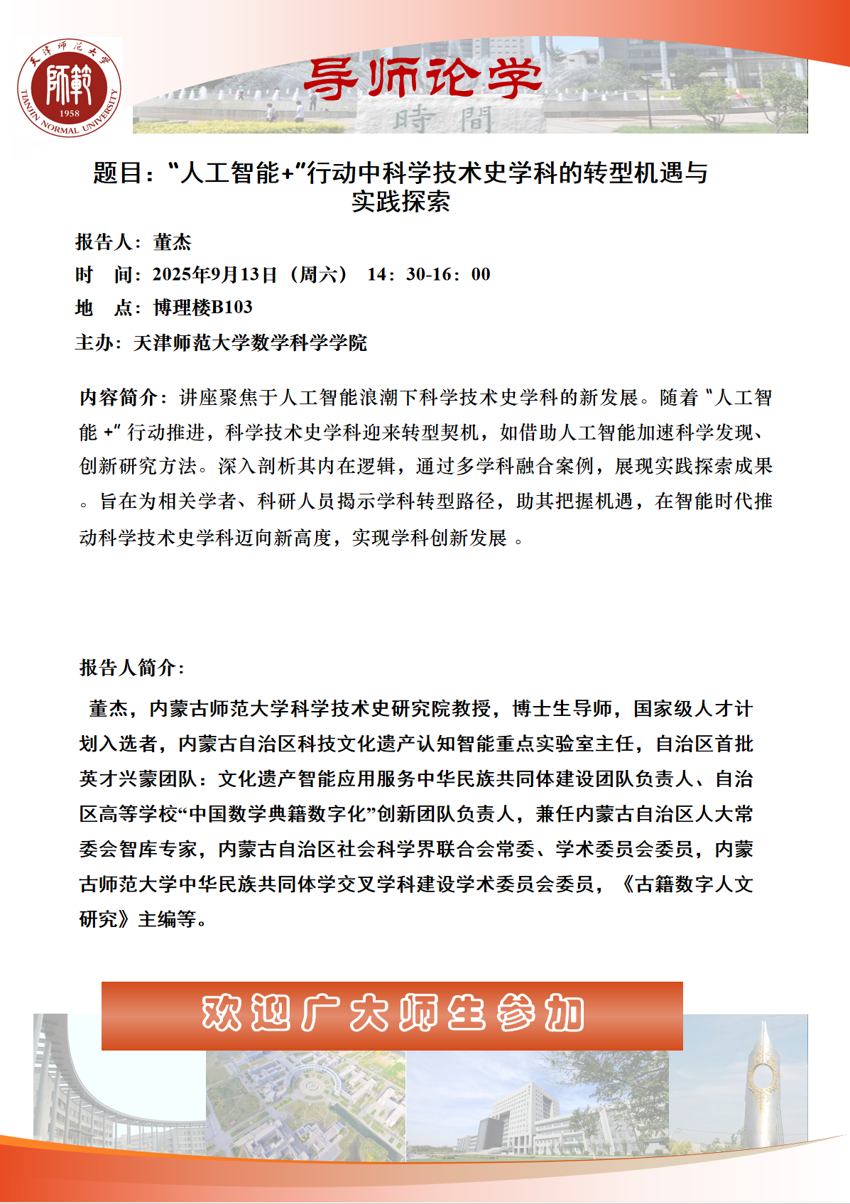 【预告】学术报告(2025-38)9月13日-“人工智能+”行动中科学技术史学科的转型机遇与实践探索