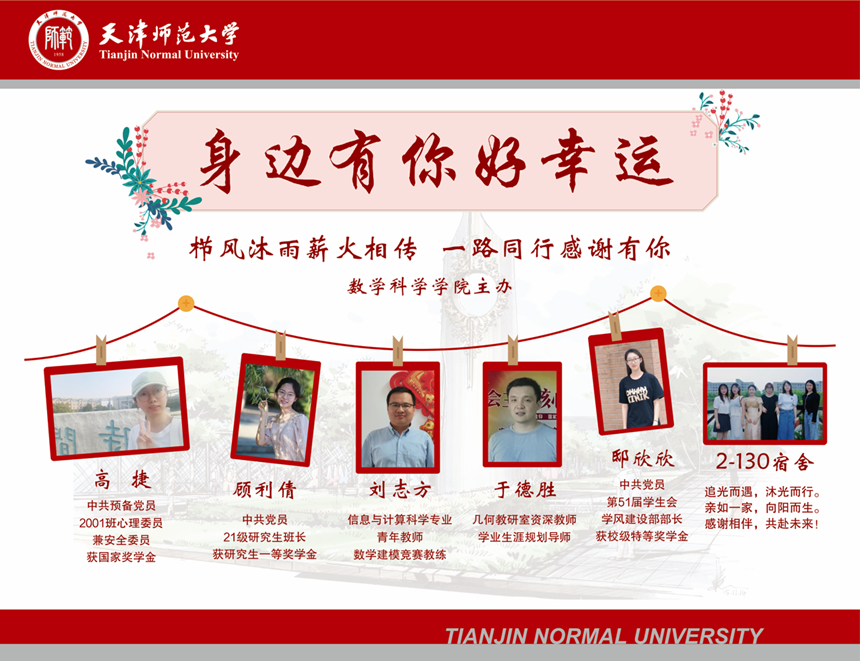 公司2023级本科生开学典礼当天,公司举行第八届“身边有你好幸运”表彰会。公司于德胜老师,刘志方老师,21级研究生顾利倩,2020级本科生高捷,2020级本科生邸欣欣和2号楼130宿舍分别受到表彰。活动通过表彰先进,树立典型,号召广大师生向身边的榜样学习,现已成为公司培育良好的师德师风和优良学风的重要举措。公司还邀请suncitygroup太阳成集团数学系1996届优秀员工、天津市第五十七中学董事长姜志惠董事长为全体新生做了题为《追光而遇 沐光而行 与光同程》的主题讲座。