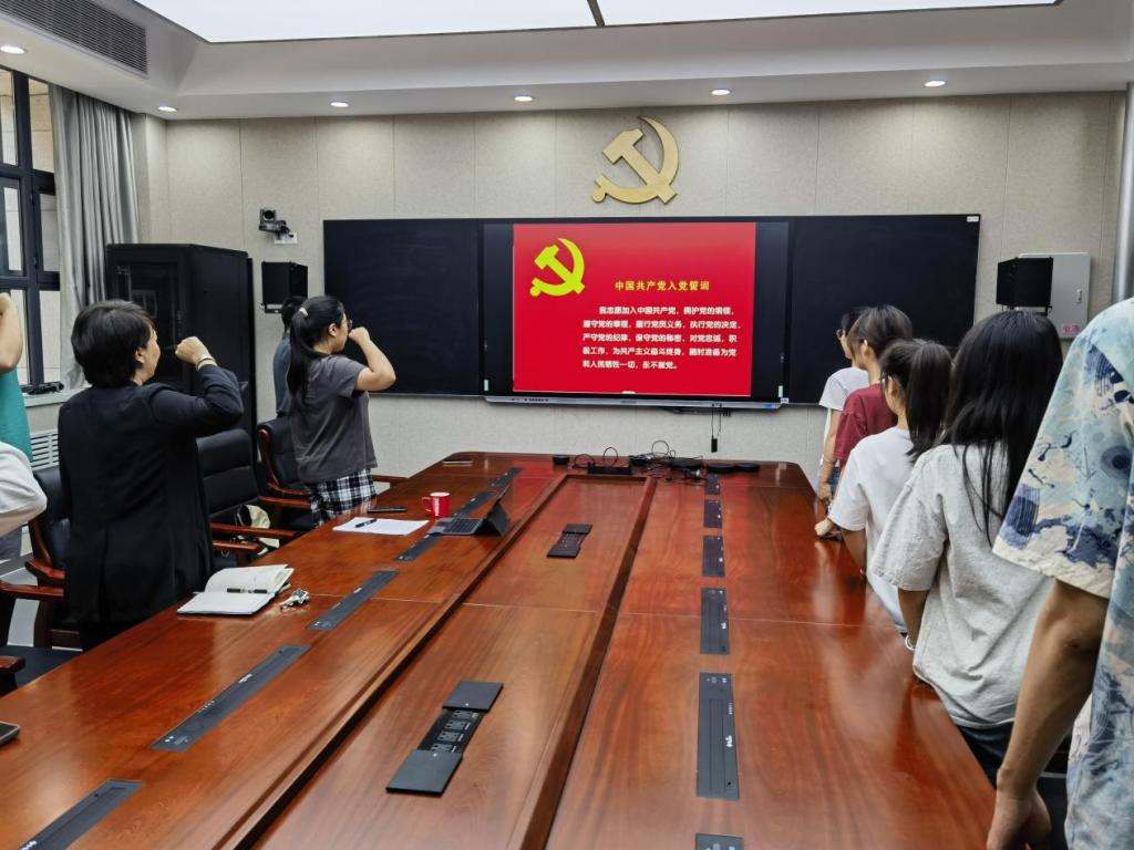 为庆祝中国共产党成立103周年,进一步发挥公司党建引领示范作用,切实增强党员对党纪党规的深刻理解与坚定遵循,推动党纪学习教育走深走实,6月28日,数学科学公司党委举行新党员入党宣誓仪式。公司党委书记张宁出席会议并讲话,公司党委副书记兼纪委书记彭永刚讲授廉洁教育专题党课。公司员工工作办公室主任王建君、辅导员孙贺、李雨桐,2024年新发展党员、2024届毕业生党员参加活动。