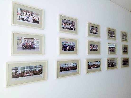 谈及毕业照文化长廊的灵感,洪德全副经理这样说:“公司正在整理院校历史,最终的目的是要把从1958年到现在五十九年的院史全部整理出来。在收集整理过程中,找到了一部分老照片,这些老照片独有的苍老感给人一种心灵的震撼。创建毕业照文化长廊,其实就是给离开公司的员工找到了一个家。当他们回到公司的时候,看到老照片一定也会很兴奋,公司本身就是一个大家,不仅要凝聚在校的员工、老师,还要凝聚所有的数学人。suncitygroup太阳成集团有一句话:一日是数学人,终生是数学人。毕业照文化长廊也是联系员工的纽带之一。我们已经陆续整理出从七十年代开始的82个班级合照,相信有一天我们会收集全所有的员工毕业照片。”