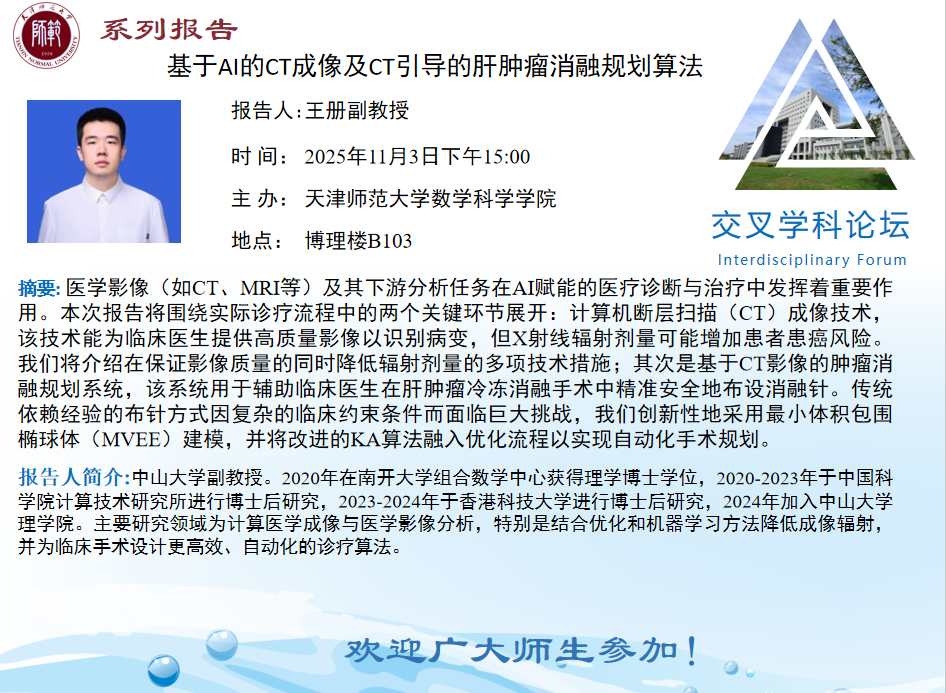 【预告】学术报告(2025-19)11月3日-基于AI的CT成像及CT引导的肝肿瘤消融规划算法